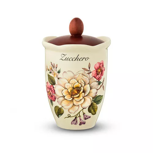 Банка для сахара Petali di Primavera, 13х20,5 см, 750 мл, керамика/дерево, Nuova Cer