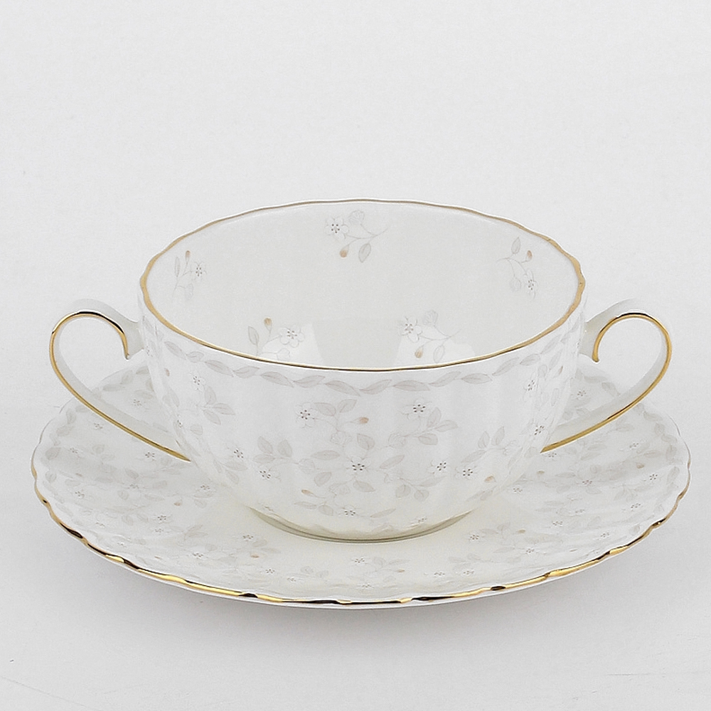 Бульонка с блюдцем Hatori Джулия Беж с золотой лентой 370 мл