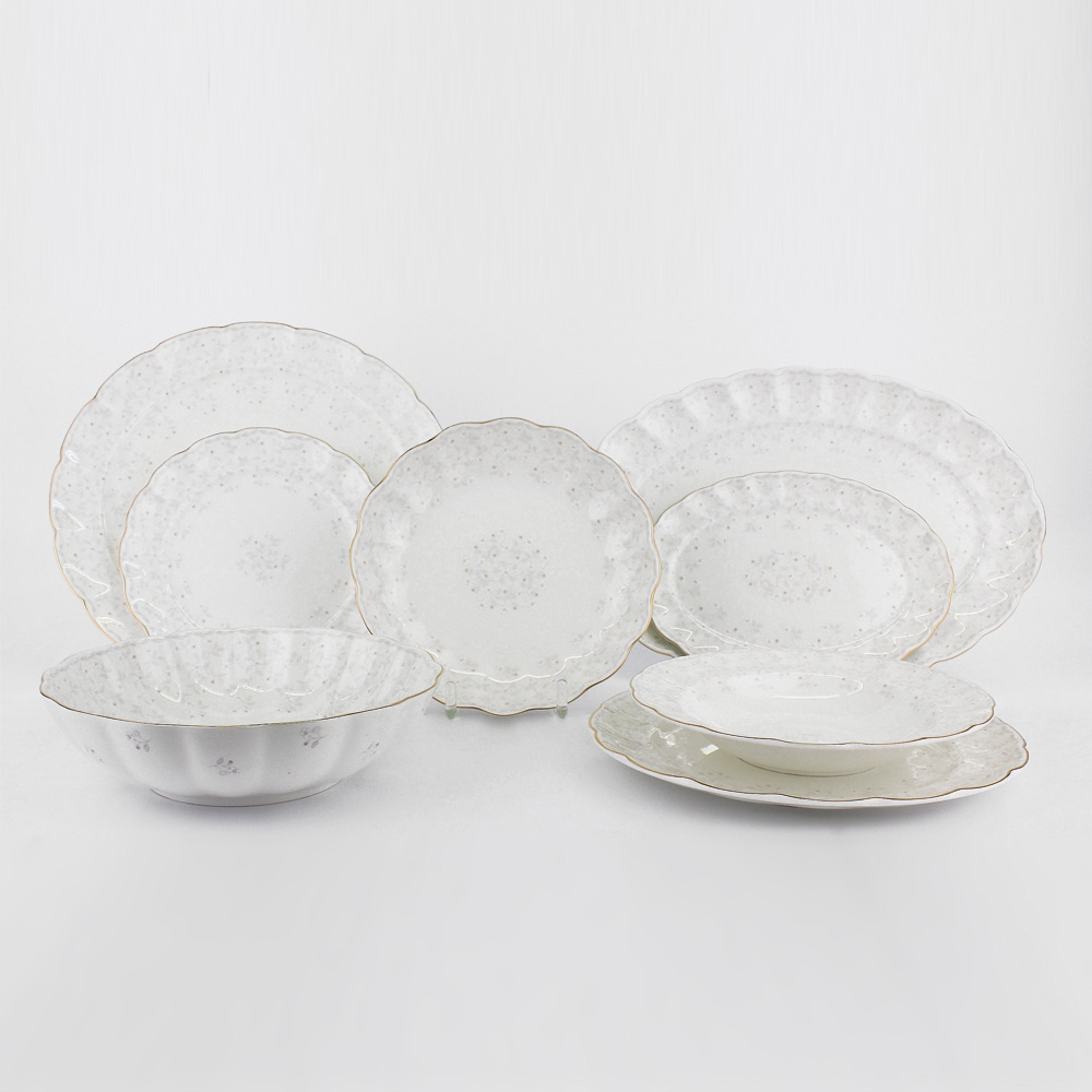 - Состав комплекта:: Супница - 1 шт, Крышка для супницы - 1 шт, Тарелка суповая 23 см - 6 шт, Тарелка обеденная 27 см - 6 шт, Тарелка закусочная 21,5 см - 6 шт, Блюдо овальное 24 см - 1 шт, Блюдо овальное 37 см - 1 шт, Блюдо овальное глубокое 23 см - 1 шт, Блюдо овальное 28 см - 1 шт, Салатник 22 см - 1 шт, Салфетник - 1 шт.