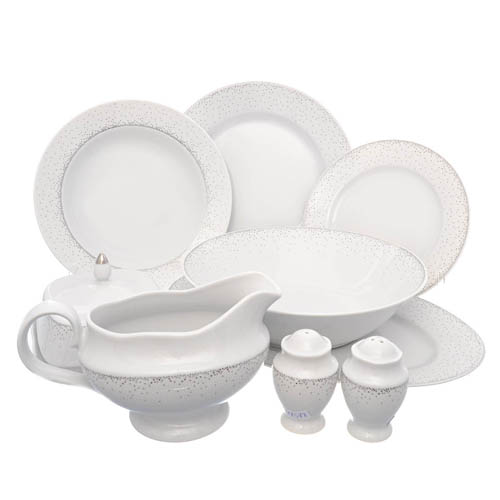 - Состав комплекта:: Тарелки суповые 22,5 см - 6 шт, тарелки подстановочные 25 см - 6 шт, тарелки пирожковые 19 см - 6 шт, блюдо овальное 33 см - 1 шт, салатник 23 см - 1 шт, масленка 0,25 л - 1 шт, соусник 0,5 л - 1 шт, солонка 4х7х4 см - 1 шт, перечница 4х7х4 см - 1 шт