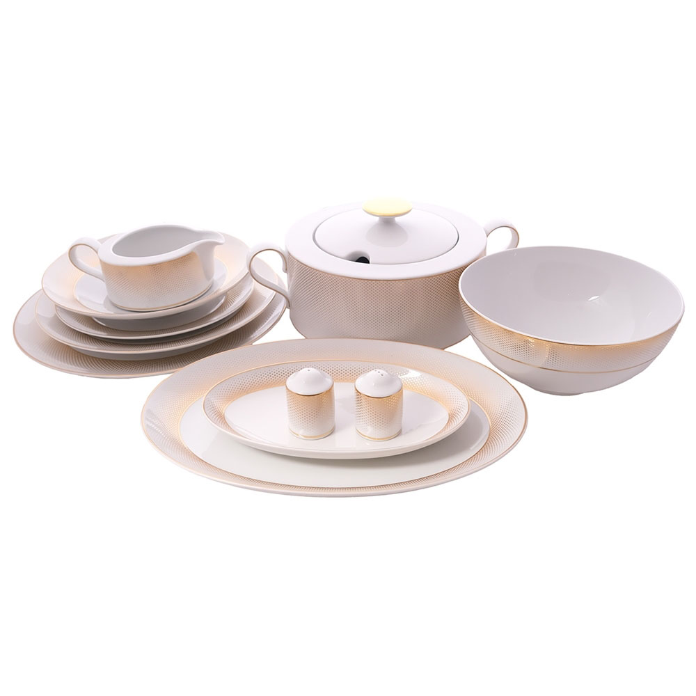 Столовый сервиз Deluxe Shape - Rio White Gold, 6 персон, 26 предметов, фарфор, Falkenporzellan
