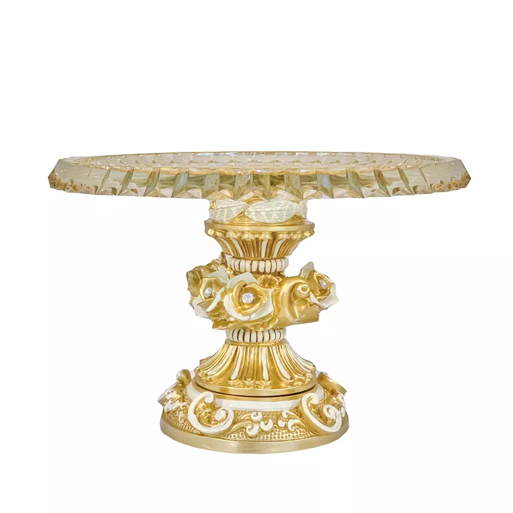 Тарелка для торта на ножке d32см, h22см, белая/золото, Cevik