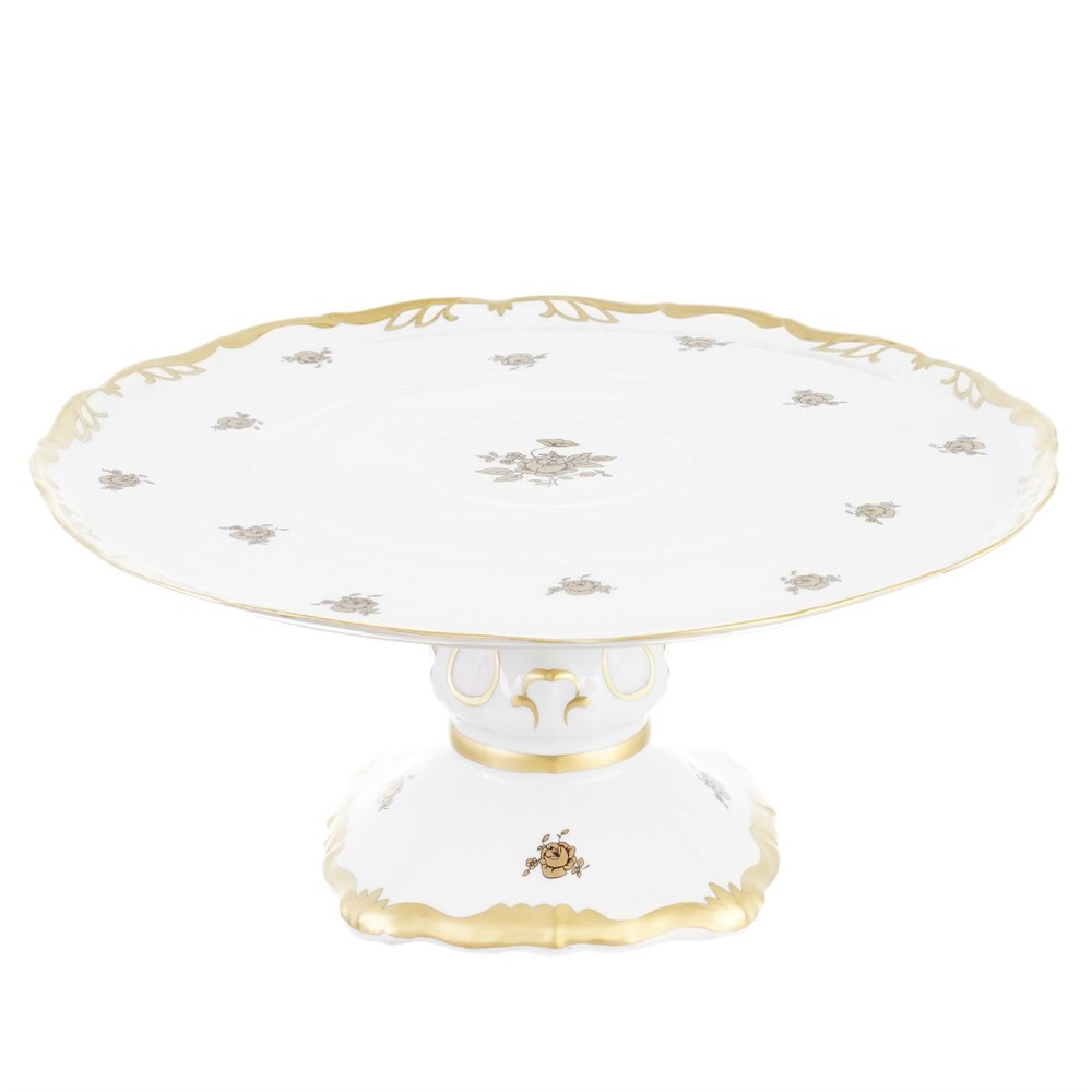 Тарелка для торта наножке Золотая роза D 30 см, Queen's Crown