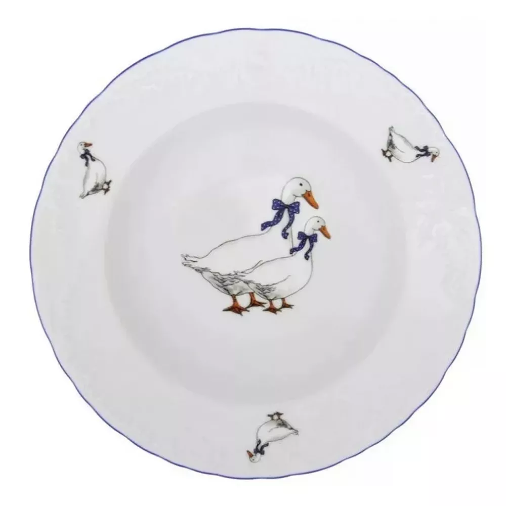 Тарелка суповая Rococo E280 Гуси D 22,5 см, Cmielow