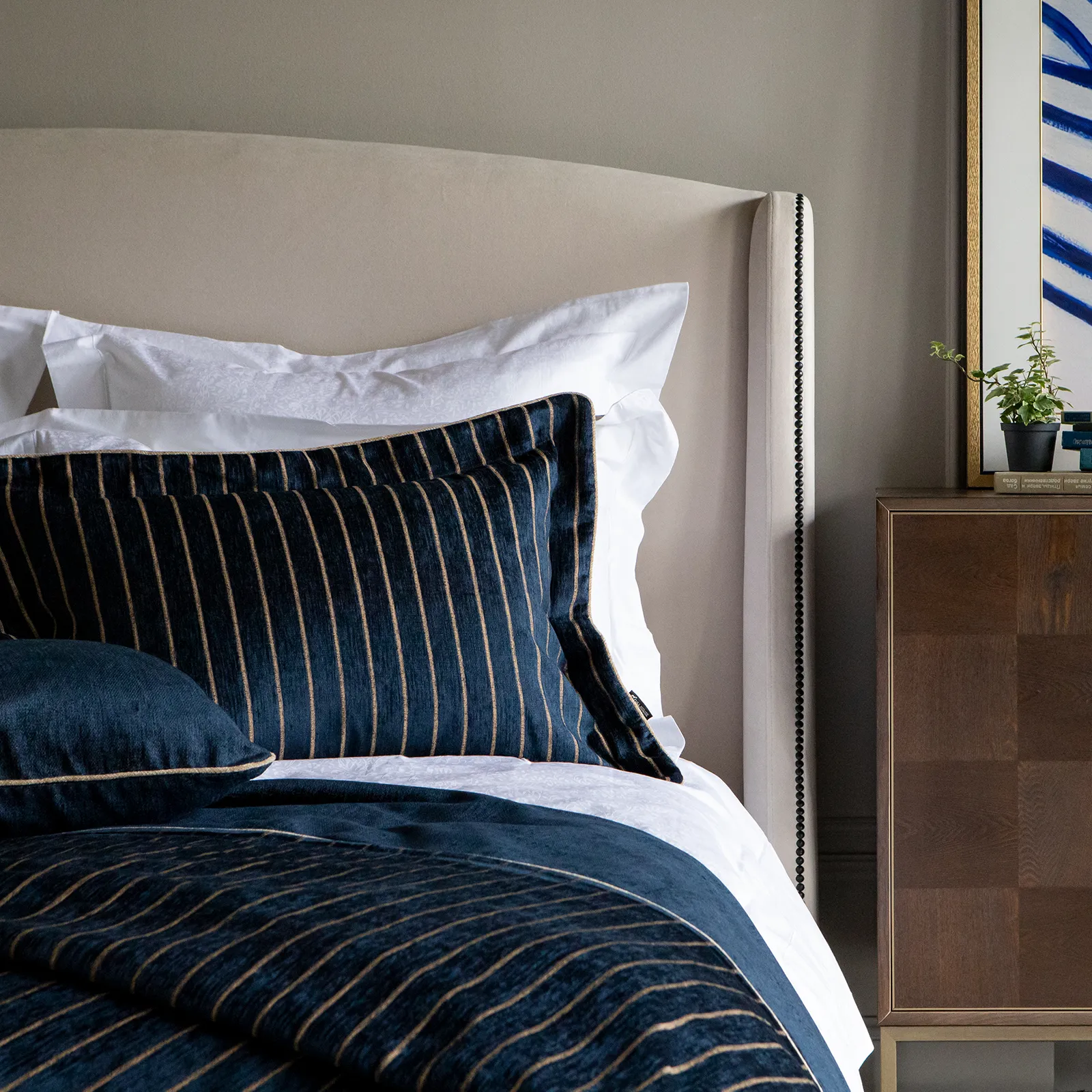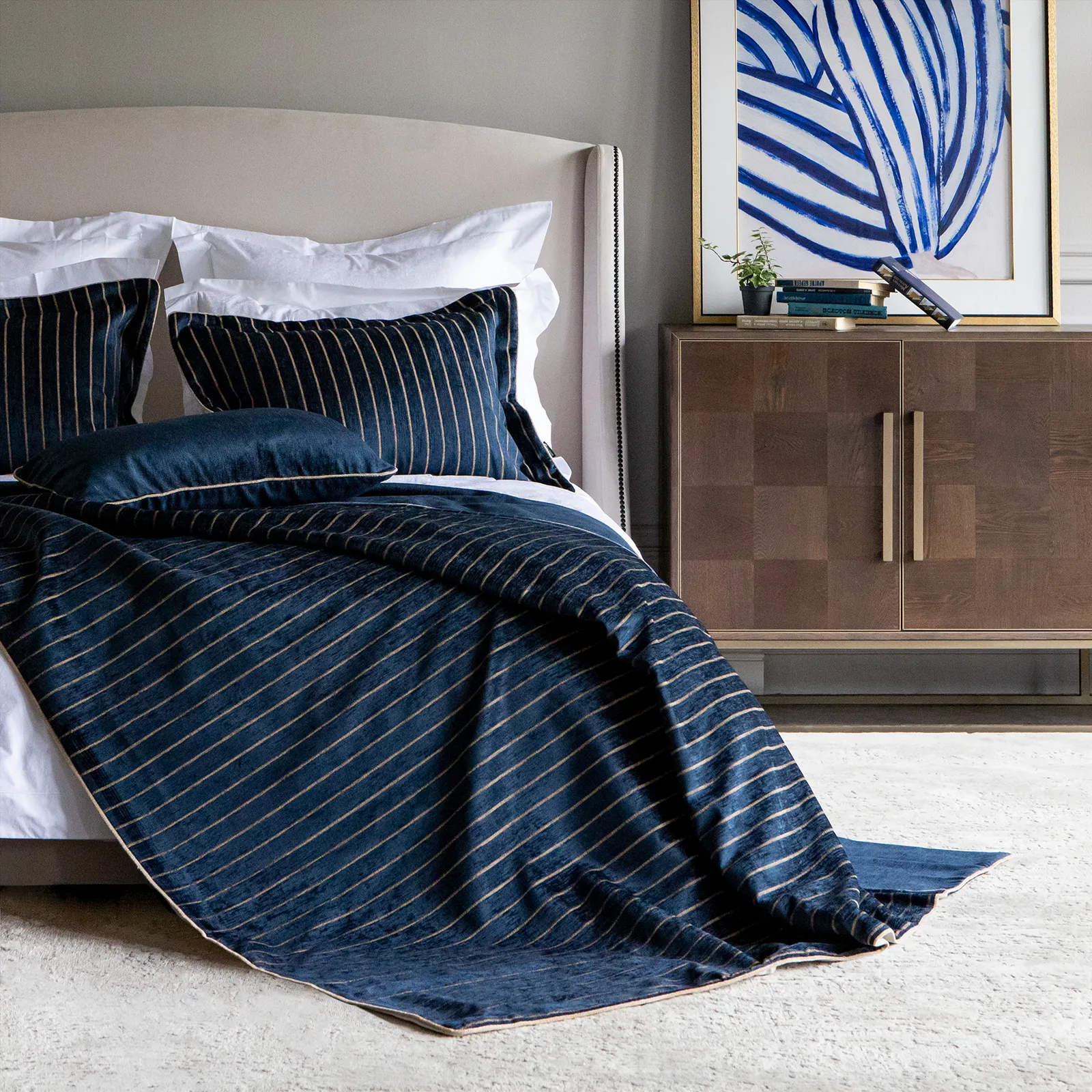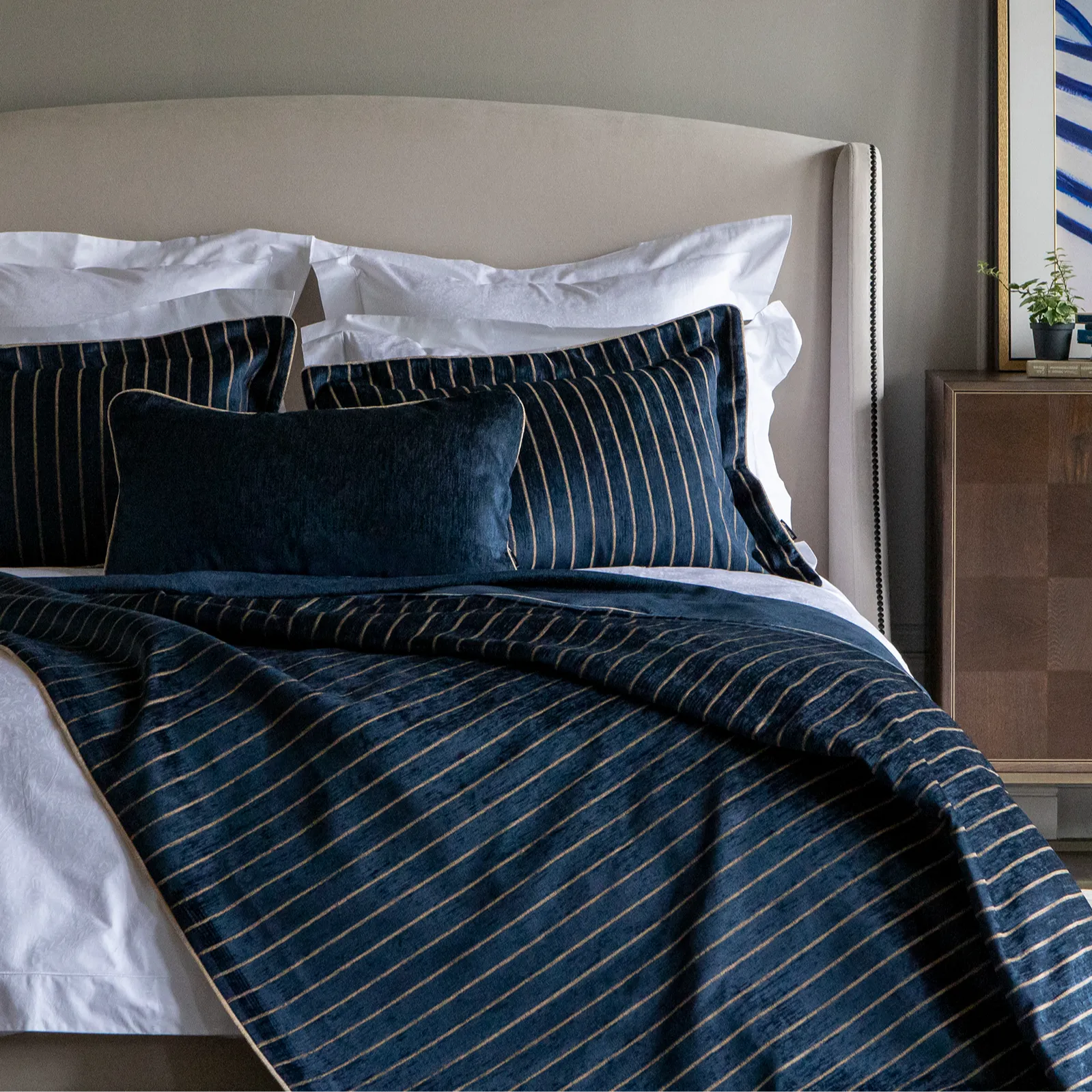 Комплект для спальни из плотной мебельной ткани с легким благородным блеском в дизайне "полоса".