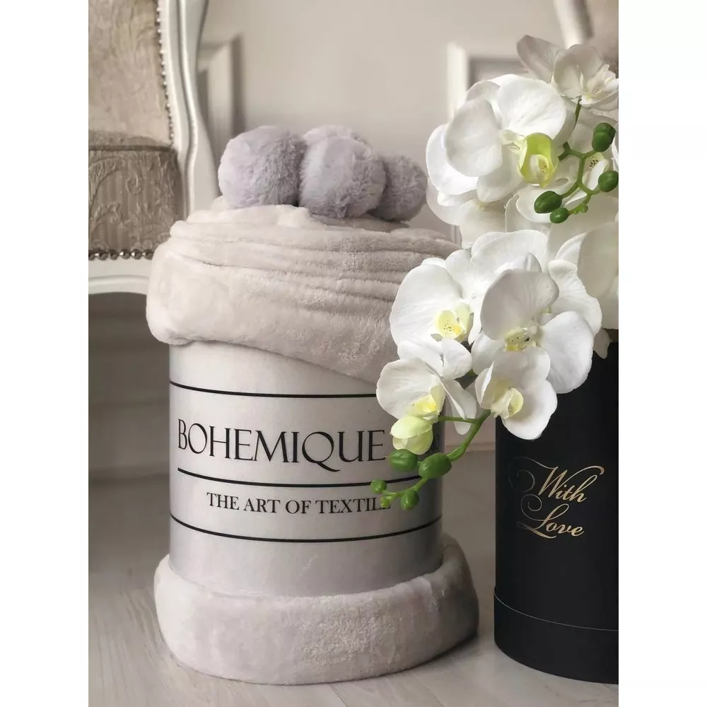Плед Royal, 220х230 см, с помпонами, серый, Bohemique-studio