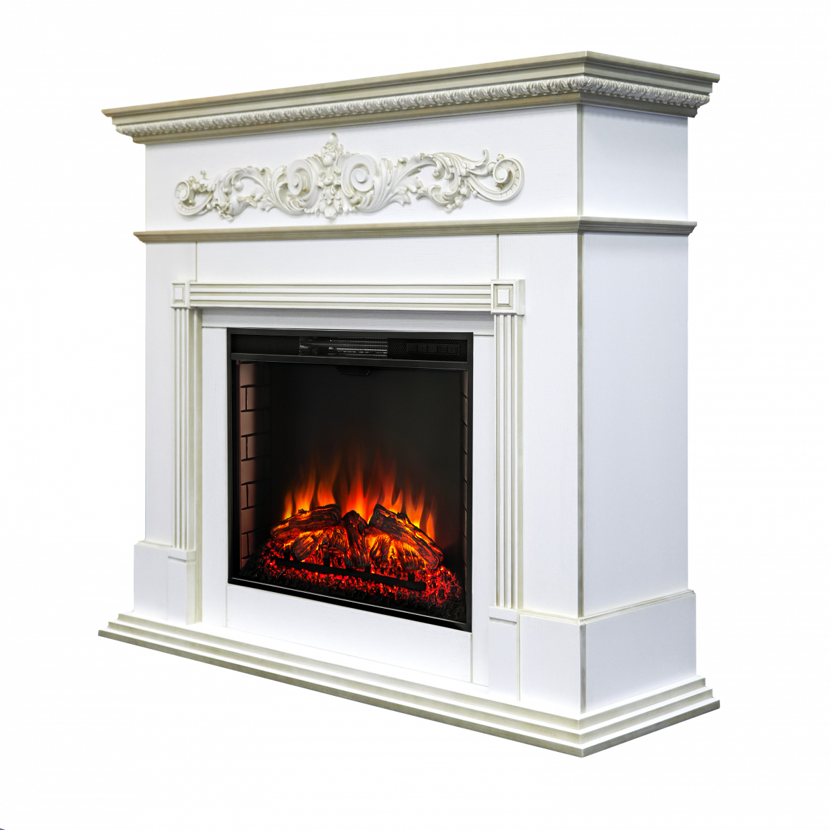 Каминокомплект BEETHOVEN/БЕТХОВЕН Белый дуб с золотой патиной с очагом Электроочаг EPSILON 26