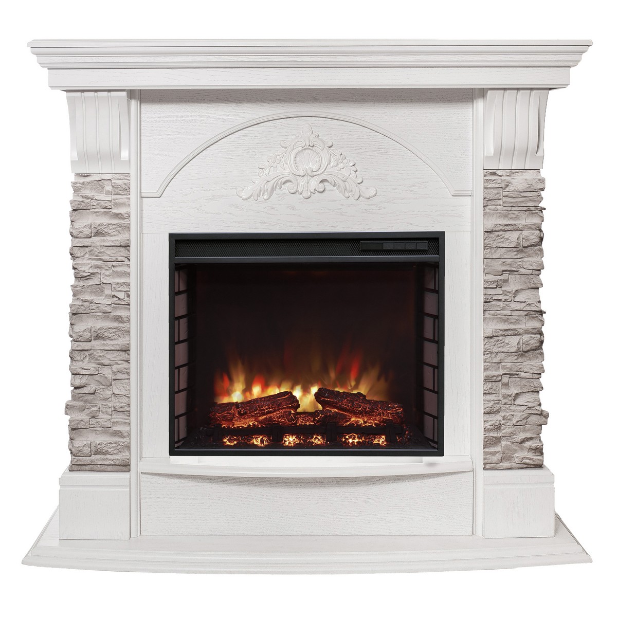 Каминокомплект ATHENA/АТЛАНТА GR Белый дуб с очагом Электроочаг RICH/РИЧ 25.5