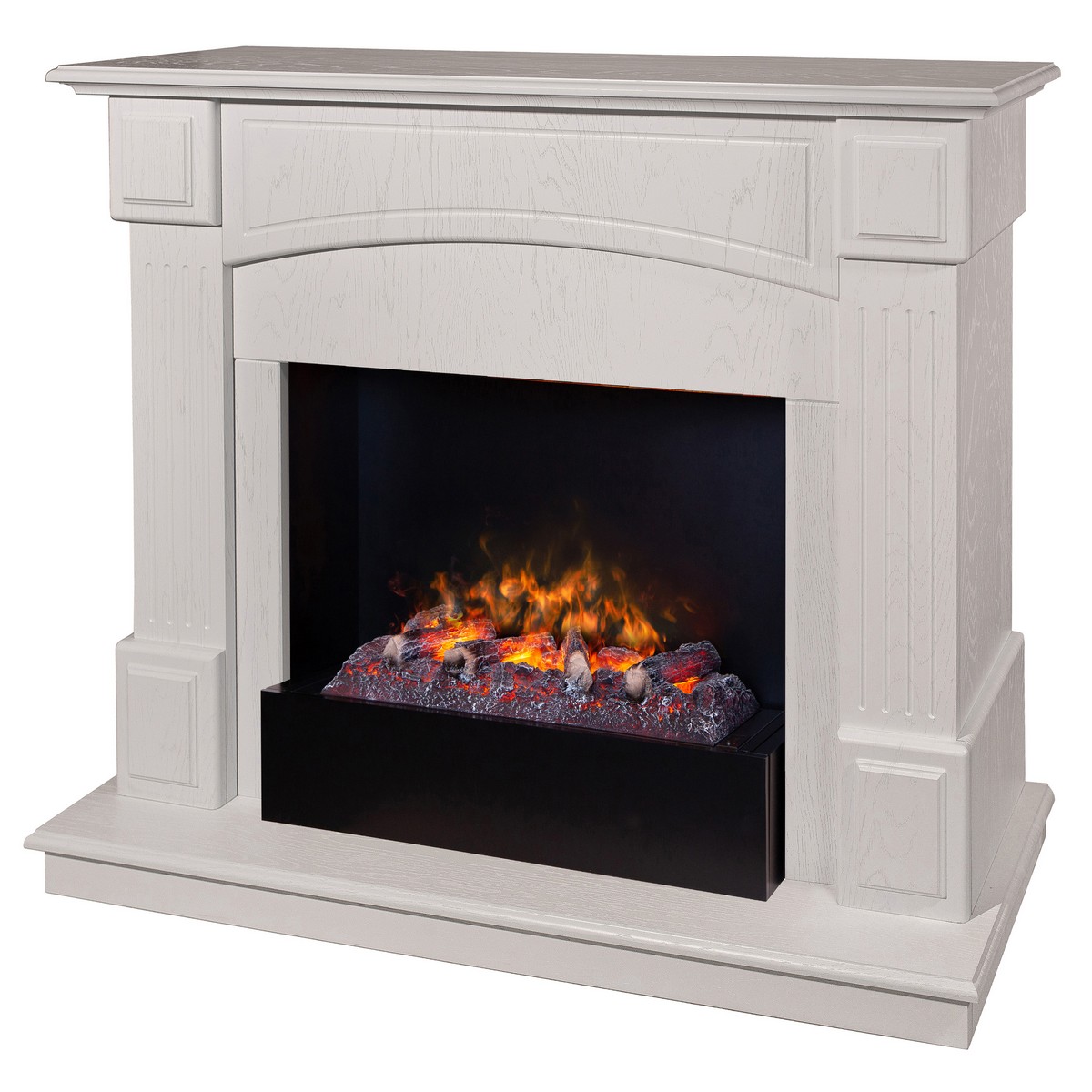 Каминокомплект CAROLINA/БОСТОН Береза белая с очагом Электроочаг CASSETTE/КАССЕТА 630 С ДРОВАМИ