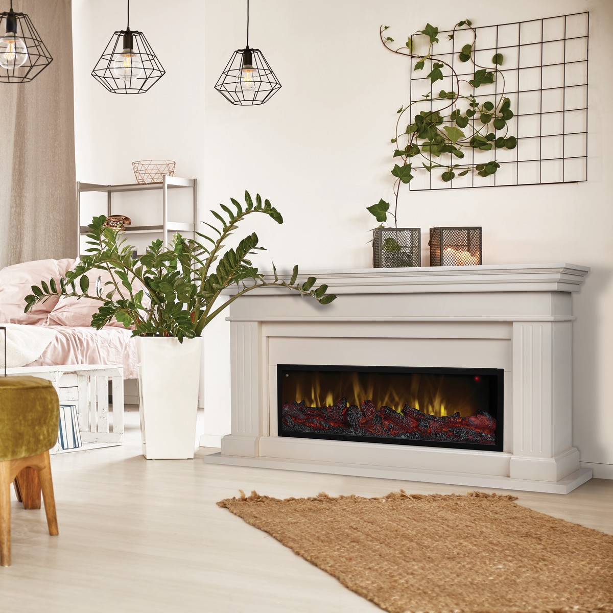 Каминокомплект ONTARIO/ЛЕОНАРДО Бежевый с очагом Электроочаг BEVERLY-S MULTY/БЕВЕРЛИ МУЛЬТИКОЛОР
