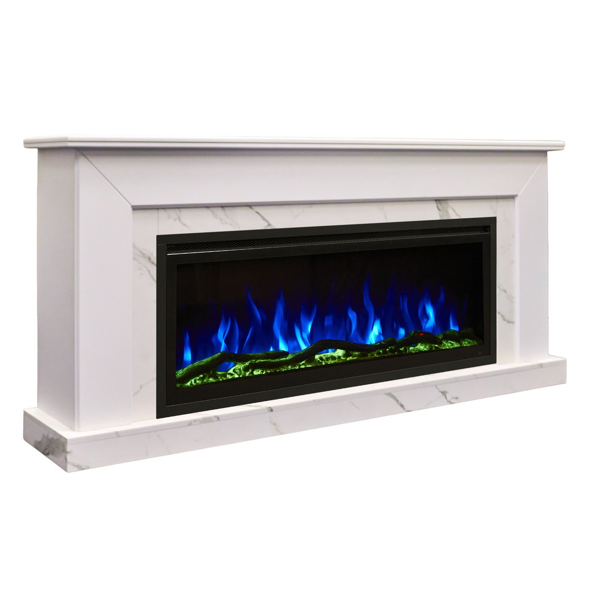 Каминокомплект СОЛО Шарли белый/Мрамор белый с очагом Электроочаг SAFITA/САФИТА 42