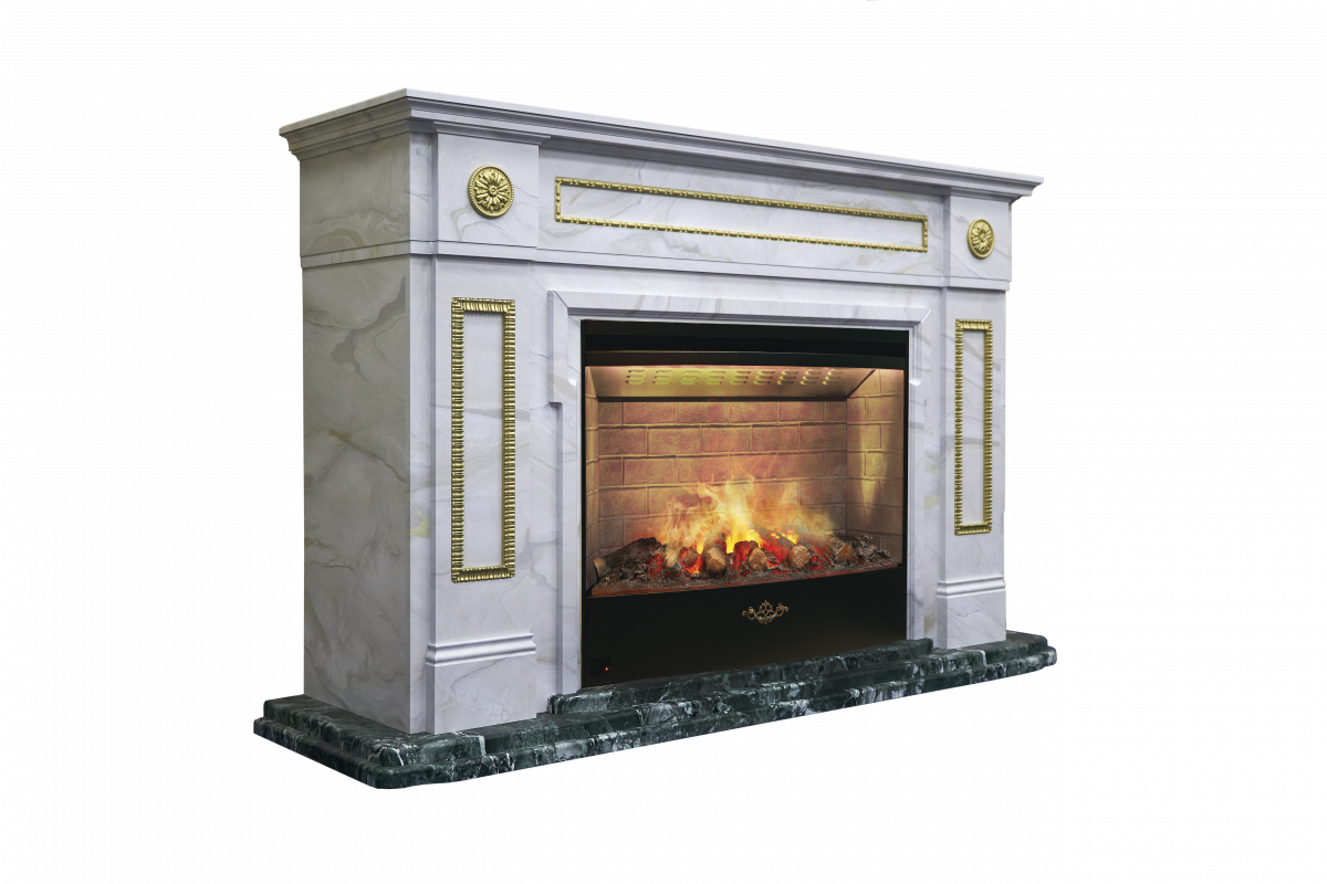 Каминокомплект PRESIDENT/ПРЕЗИДЕНТ Президентский мрамор с очагом Электроочаг FIRESTAR/ФАЕРСТАР 33