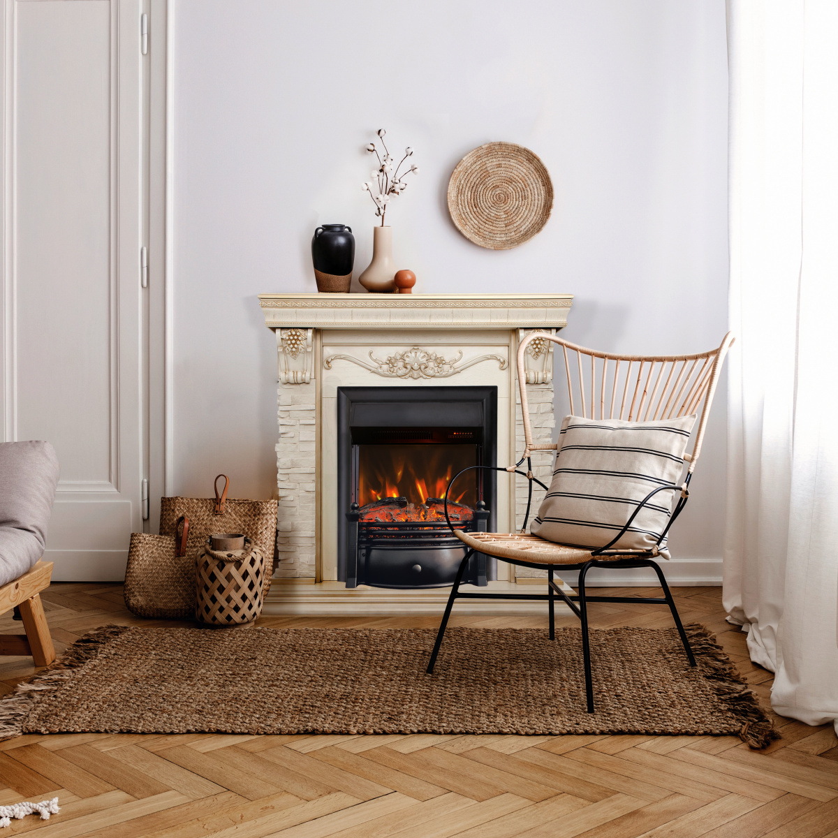 Электрический камин RealFlame Bonfire это обязательный предмет интерьера для вашей гостиной, его предназначением является украшение и декорация вашего дома. Достигается это посредством имитации пламени на экране очага и конверторного обогревателя встроенного в корпус. Двухуровневый тепловентилятор обогреет за полчаса любое помещение - спальню, кухню, его можно просто поставить на пол или встроить в каминное обрамление, в нишу или в мебель - есть датчик защиты от перегрева. Камин используют в любую погоду зимой, осенью или весной, в квартире или на даче. Летом можно не включать обогрев - проекционная технология пламени имитирующая настоящий огонь работает в независимом режиме. Электрокамин идеально подходит для семейных торжеств или праздников, можно включить имитацию потрескивания дров и под звуки костра наслаждаться общением с друзьями, коллегами или семьей. Очаг с черной рамкой имеет дополнительные функции пульта ДУ, регулировку яркости и таймер отключения.