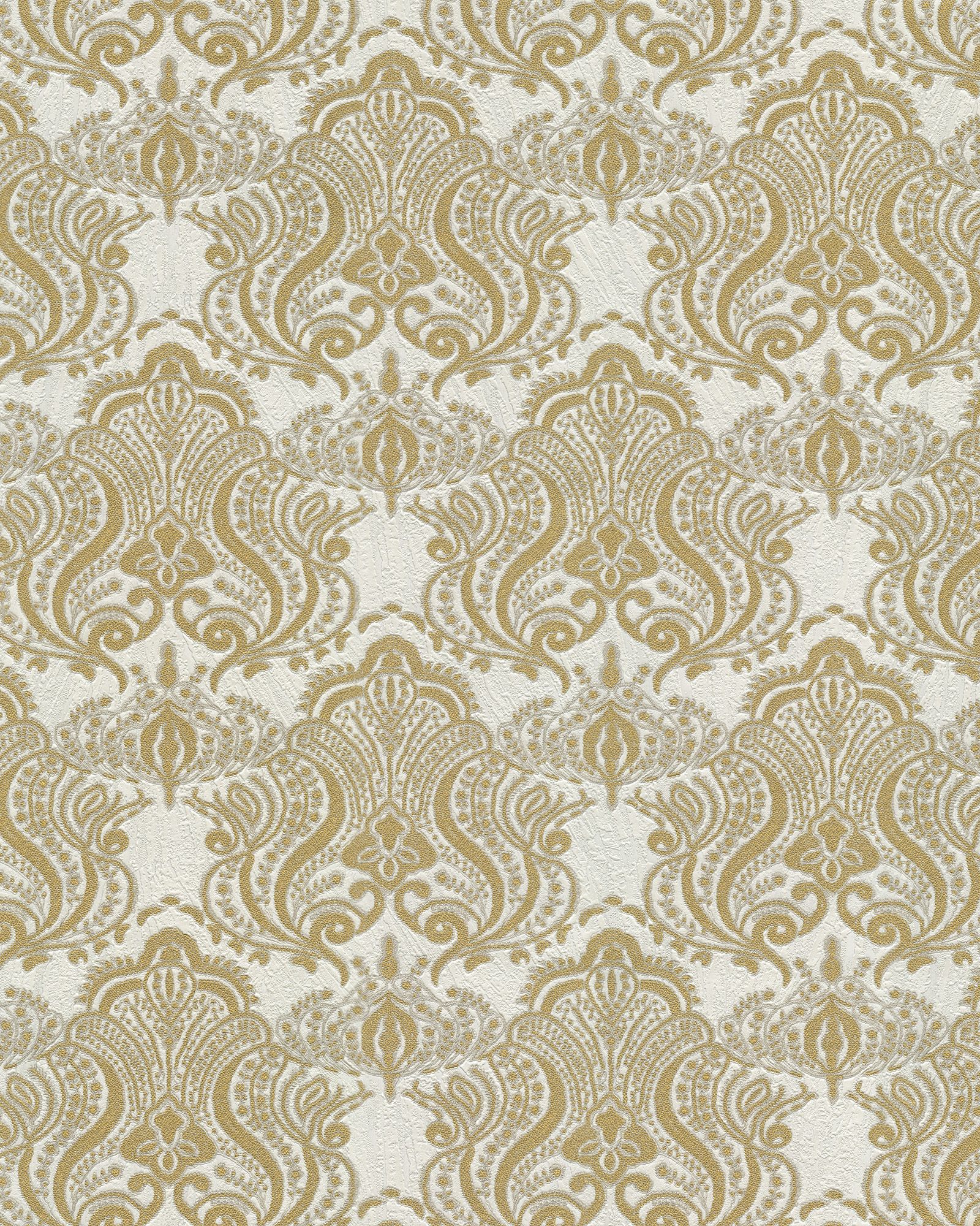 86075/Обои/Valentin Yudashkin/Valentin Yudashkin №5/Дамаск с паетками золото на белом к 86084/Тяжелый винил на флизелине/1,06*10,05