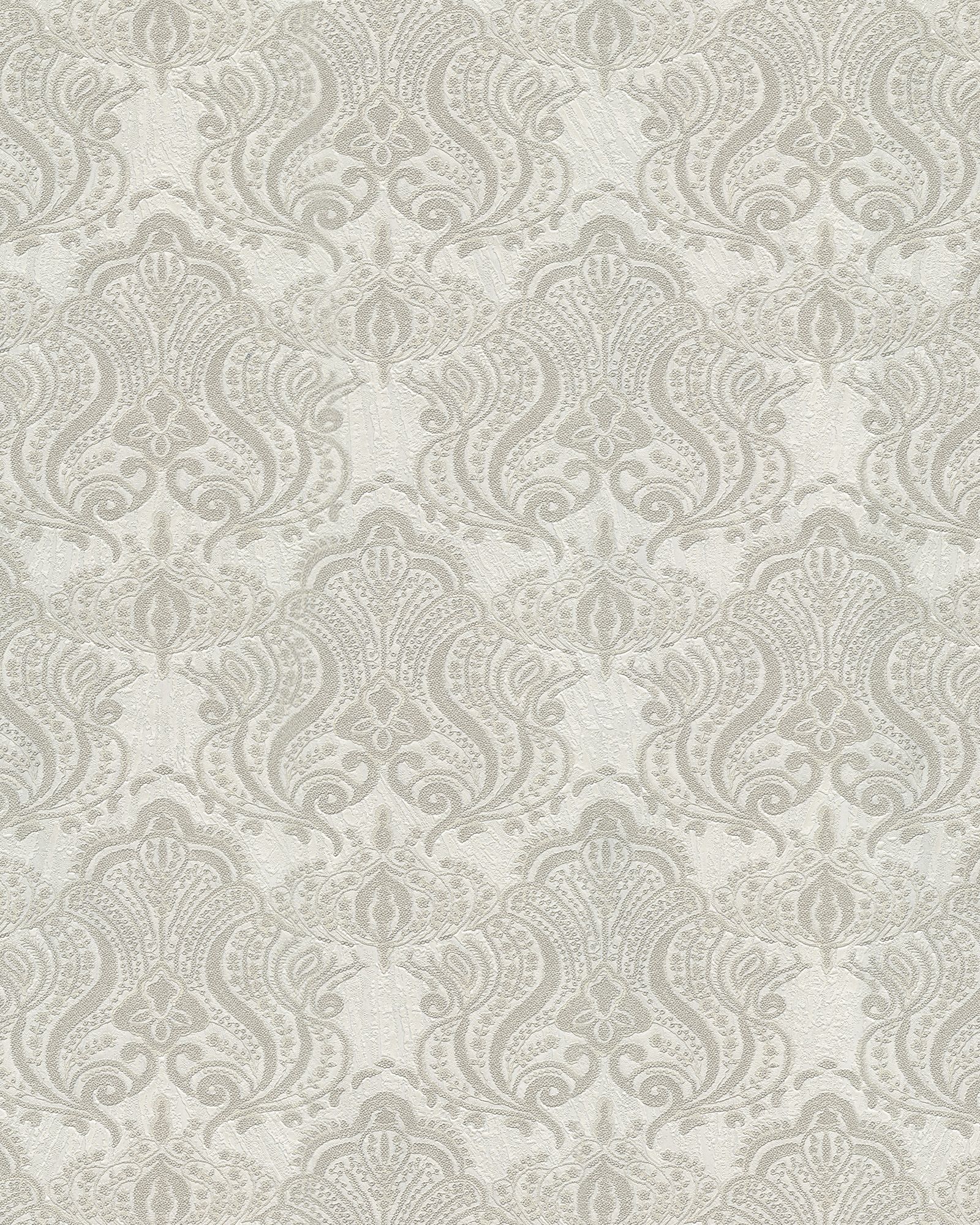 86077/Обои/Valentin Yudashkin/Valentin Yudashkin №5/Дамаск с паетками серебро на белом к 86086/Тяжелый винил на флизелине/1,06*10,05