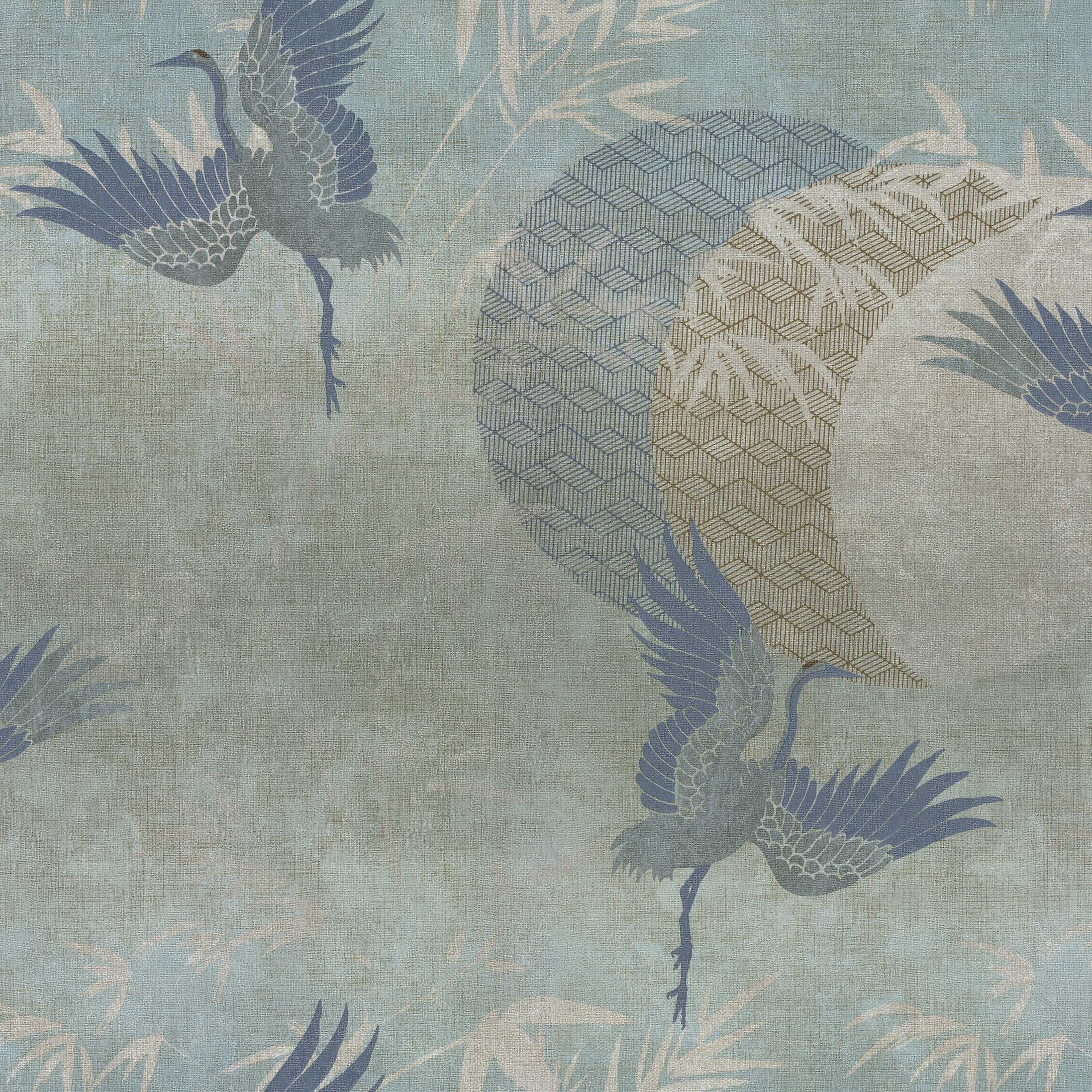 72906/Обои/Decori-Decori/Zen/Журавль на рогожке цвет бирюзовый к 72923,72924/Тяжелый винил на флизелине/1,06*10,05