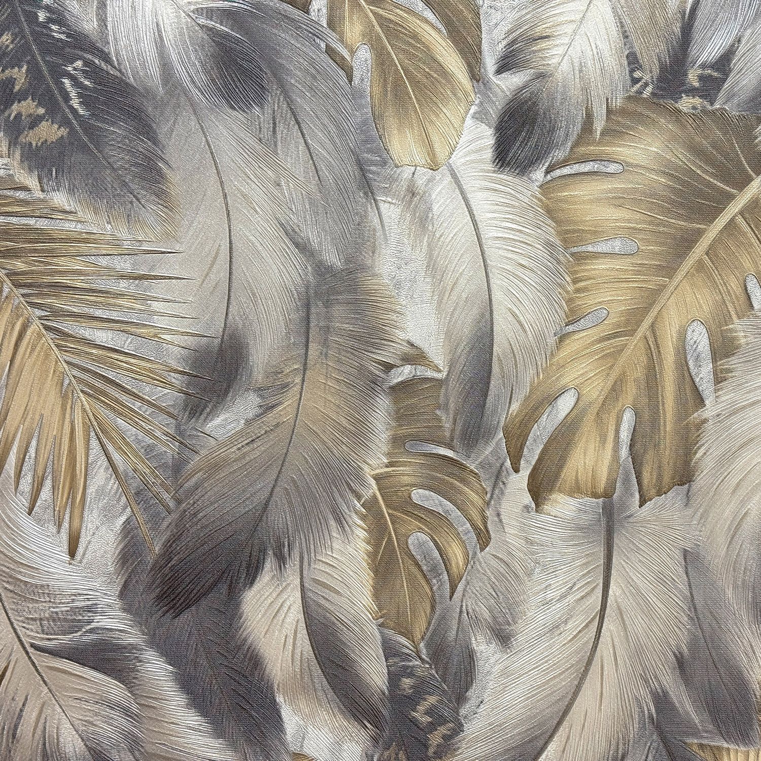 MS11404/Обои/Prisma/La Storia II/мотив перья темно серые с золотыми листьями к арт. MS11504/Компактный винил на флизелине/1,06*10,05