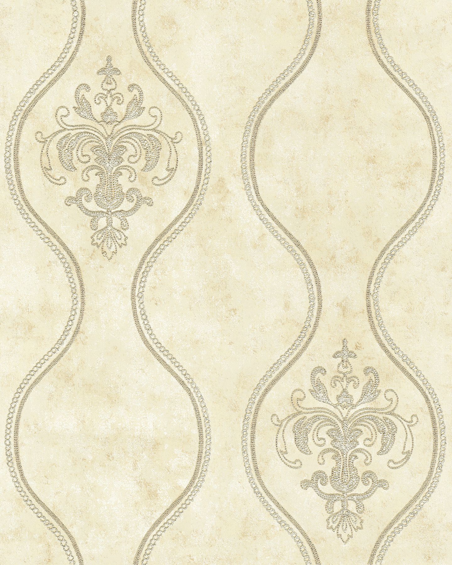 XSS0704/Обои/Wiganford/Melange/Дамаск на волне бежевый к XSS0203,0109/Флизелин с декоративной вышивкой/0,53x10,05
