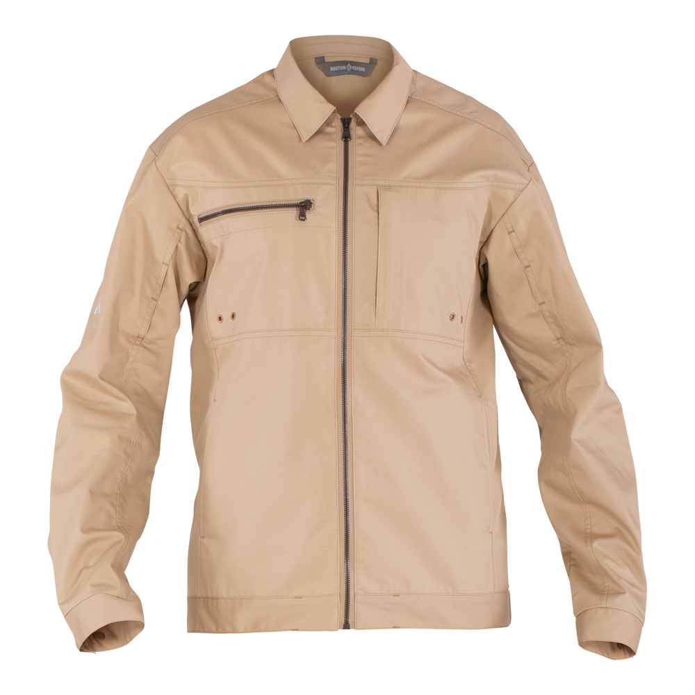 Особая структура ткани - в хлопковую основу вплетены полиэфирные каркасные нити для прочности. Наивысшие показатели воздухопроницаемости и комфорта. Рекомендуем для жарких регионов!. Ткань: смесовая, хлопок - 80%, полиэфир - 20%, 170 гр/м2. Отделка: МВО. Фурнитура: пластик (не нагревается на солнце и не обжигает кожу). Застежка: центральная на молнии. Карманы: 2 нагрудных на молнии с вертикальным и горизонтальным входом, 2 нижних кармана.. Воротник: отложной. Рукав: втачной, с накладкой в локтевой области и вентиляционными отверстиями.. Регулировка: пояс куртки с хлястиками на кнопках, манжет на кнопках.. Вентиляционные отверстия: щели на спинке, рукавах, люверсы на полочках.. Световозвращающие элементы: сегментированный принт на рукавах и кокетке спинки. Цвет: бежевый (устойчив к ультрафиолету!).