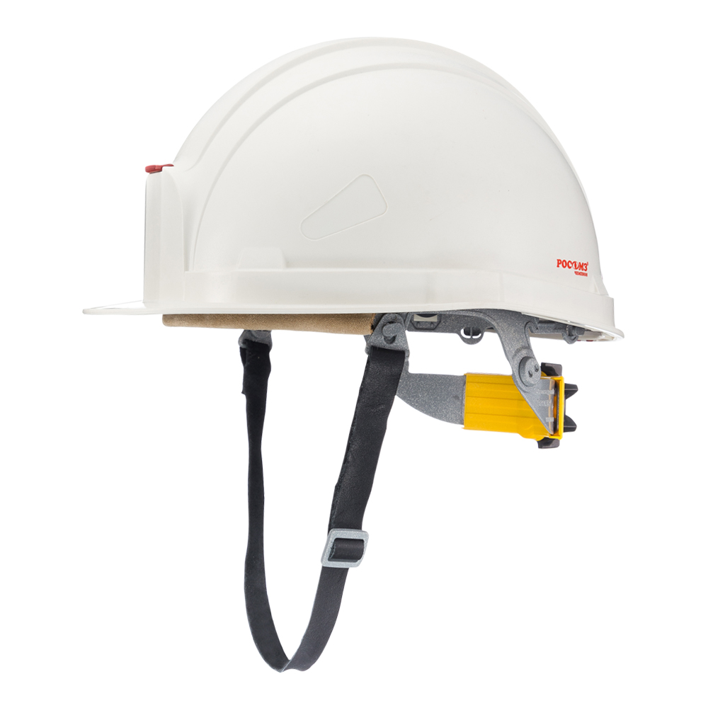 Термостойкая каска рекомендована для работы в горячих цехах, а также для использования в комплекте средств защиты от термических рисков электрической дуги. Укороченный козырек для увеличенного обзора.. Комплектация: 2-х точечный кожаный подбородочный ремень с креплением к оголовью. Материал корпуса: полиамид / PA/ SUPER Termotrek®. Материал оголовья: текстильный. Температурный режим: от -50 до +150 °C. Крепление оголовья: в восьми точках. Регулировка оголовья: храповик. Крепление других видов СИЗ: пазы для крепления наушников, щитков, встраиваемых очков. Электрическая изоляция: 440В. Масса: 390 г.
