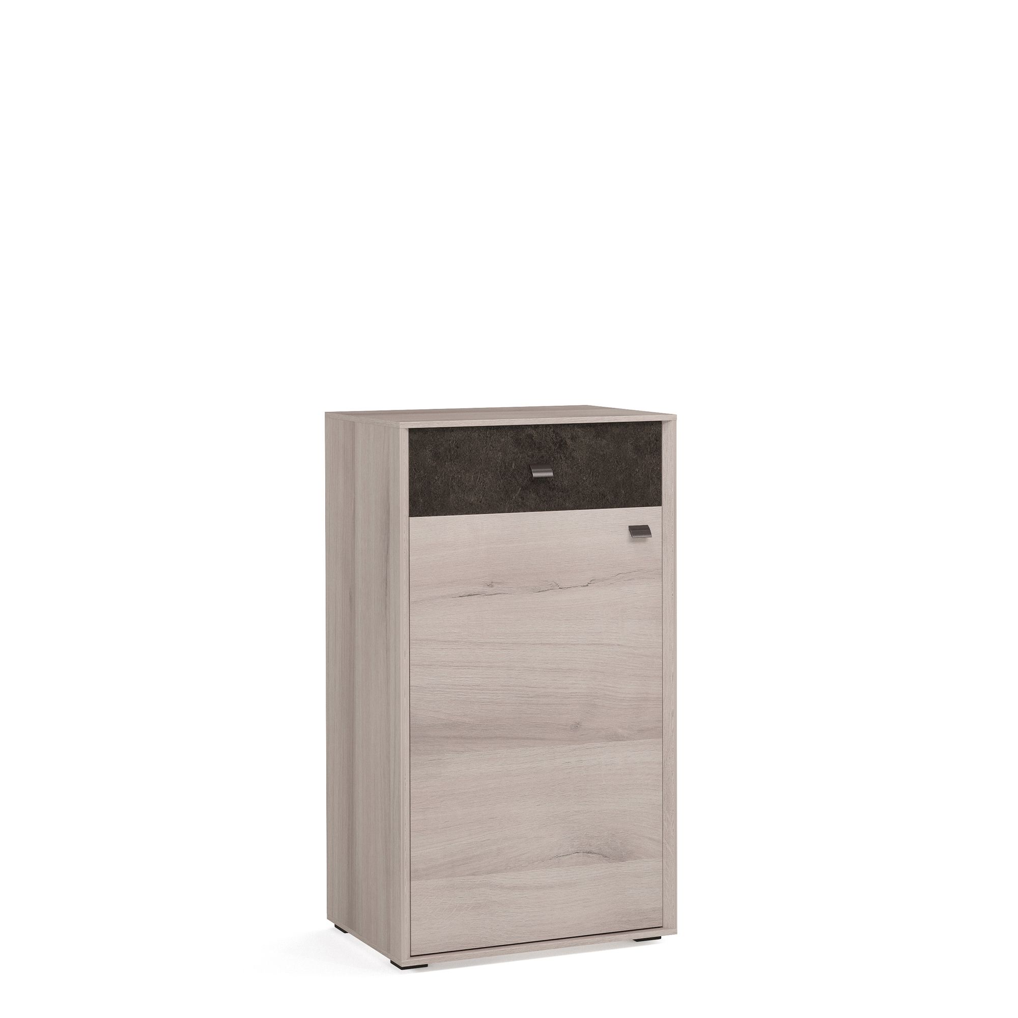 Обувная тумба ALTERA с выдвижным ящиком и распашным фасадом – настоящая находка для небольшой прихожей, где каждый квадратный сантиметр пространства должен работать на вас. За фасадом расположены полки из ДСП.