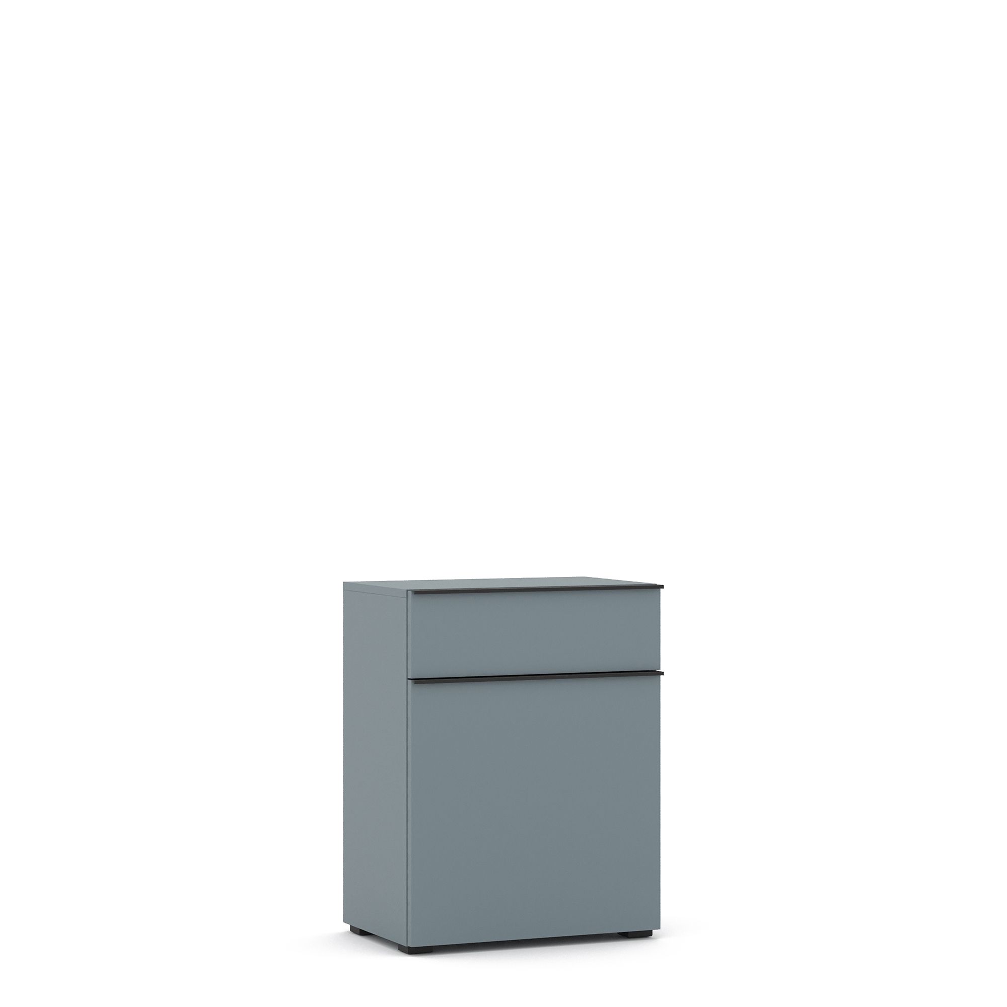 Обувная тумба TERAMO оснащена выдвижным ящиком и распашным фасадом с системой открывания Push (возможно как правое, так и левое открывание). Внутреннее наполнение тумбы представляет собой две металлические полки для обуви.