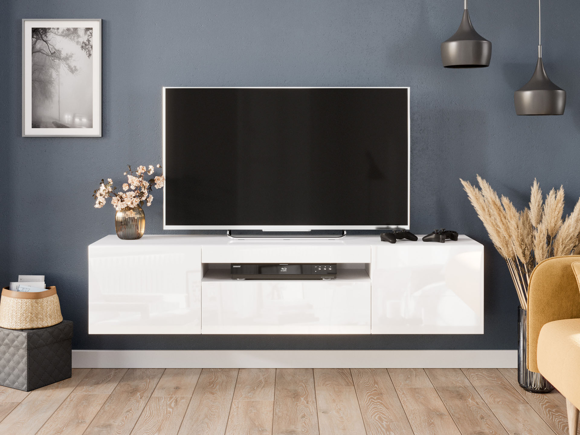 ЛД 685.050.000 А "Бруклин" Тумба ТВ 1600 (Белый глянец М, исполнение 1)