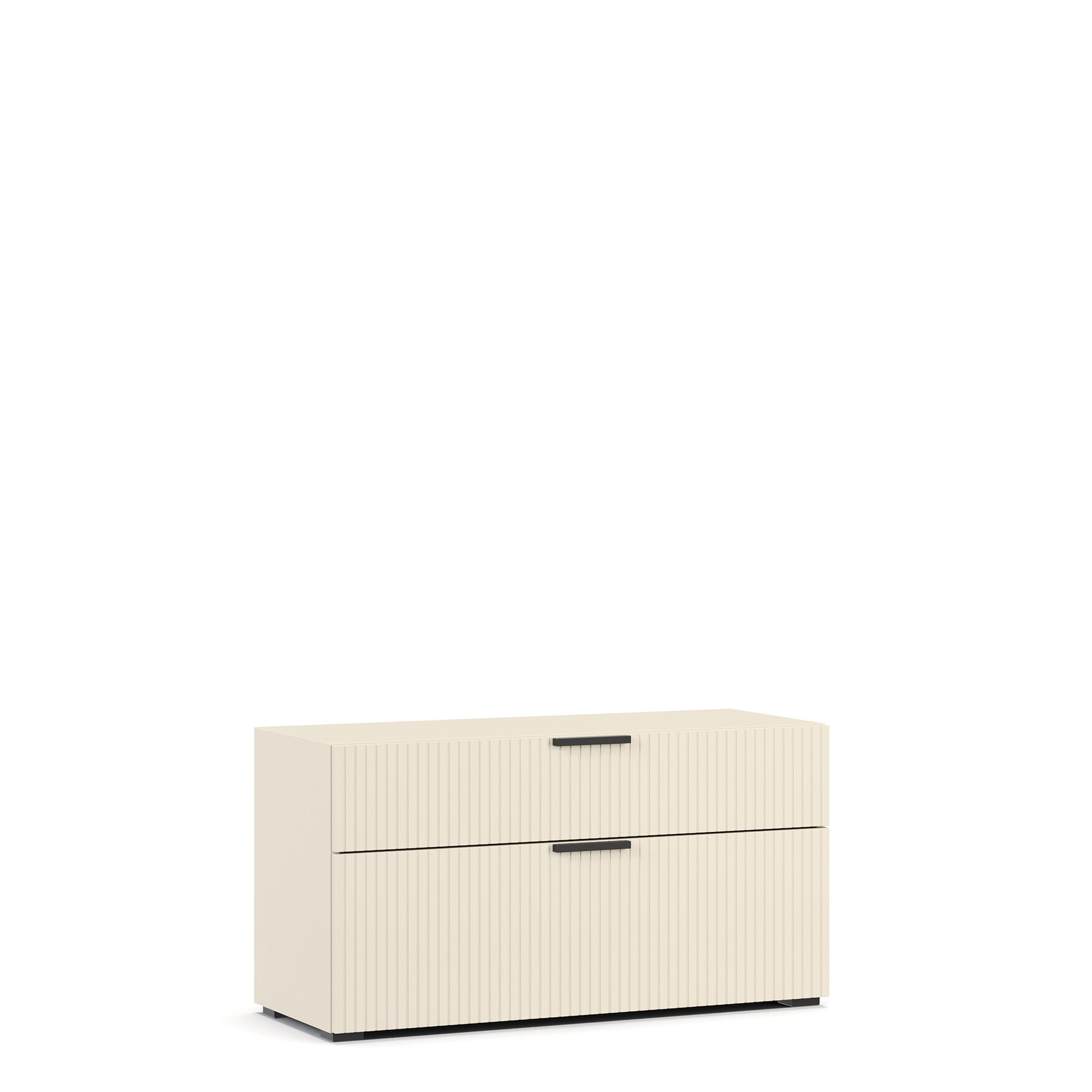 ТВ-тумба NAPOLI с фасадом, декорированным вертикальной фрезеровкой, оснащена двумя выдвижными ящиками. В качестве опции предлагается возможность установки тумбы на опоры высотой 12 см (заказываются отдельно). ВАЖНО! Обязателен заказ верхней крышки (использование тумбы без этого элемента дизайном не предусмотрено).