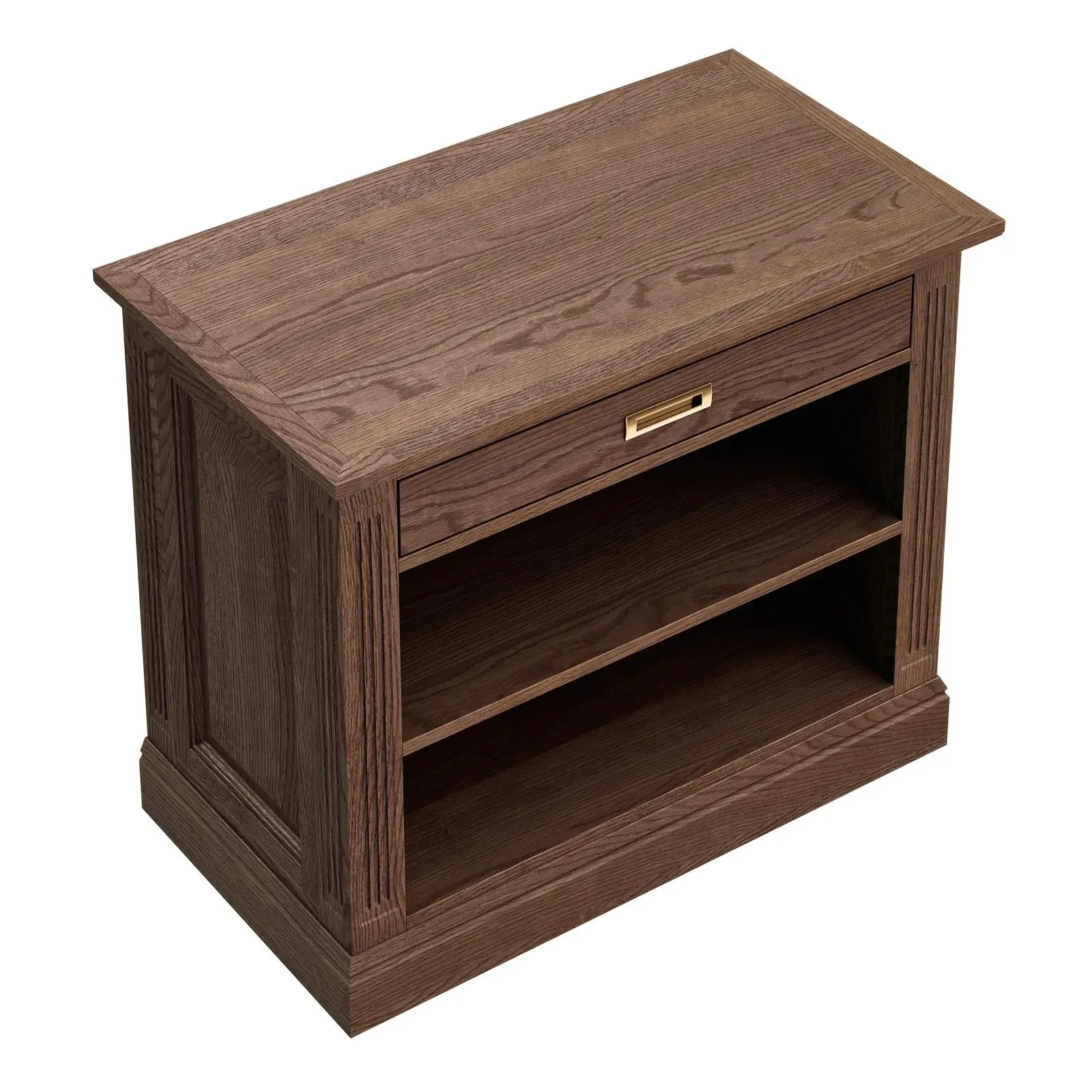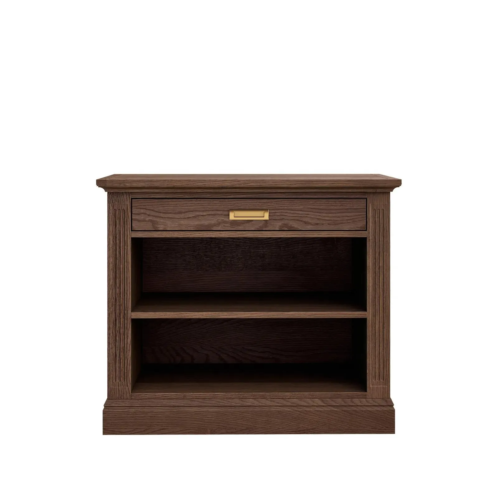 Прикроватная тумба с открытыми полками коллекции Timeless из шпона вяза в морилке черного цвета с сохранением фактуры дерева.