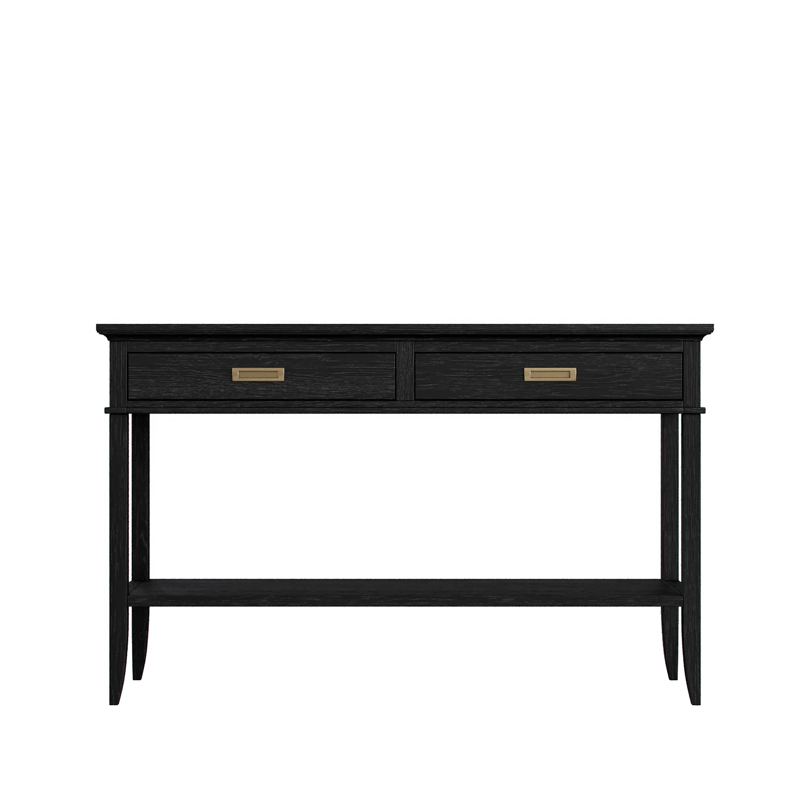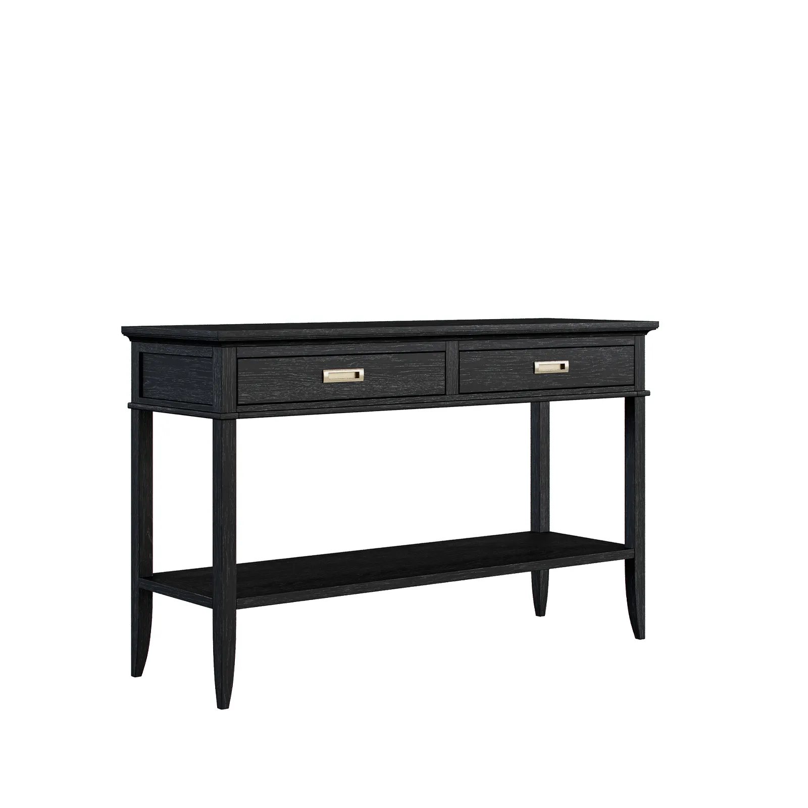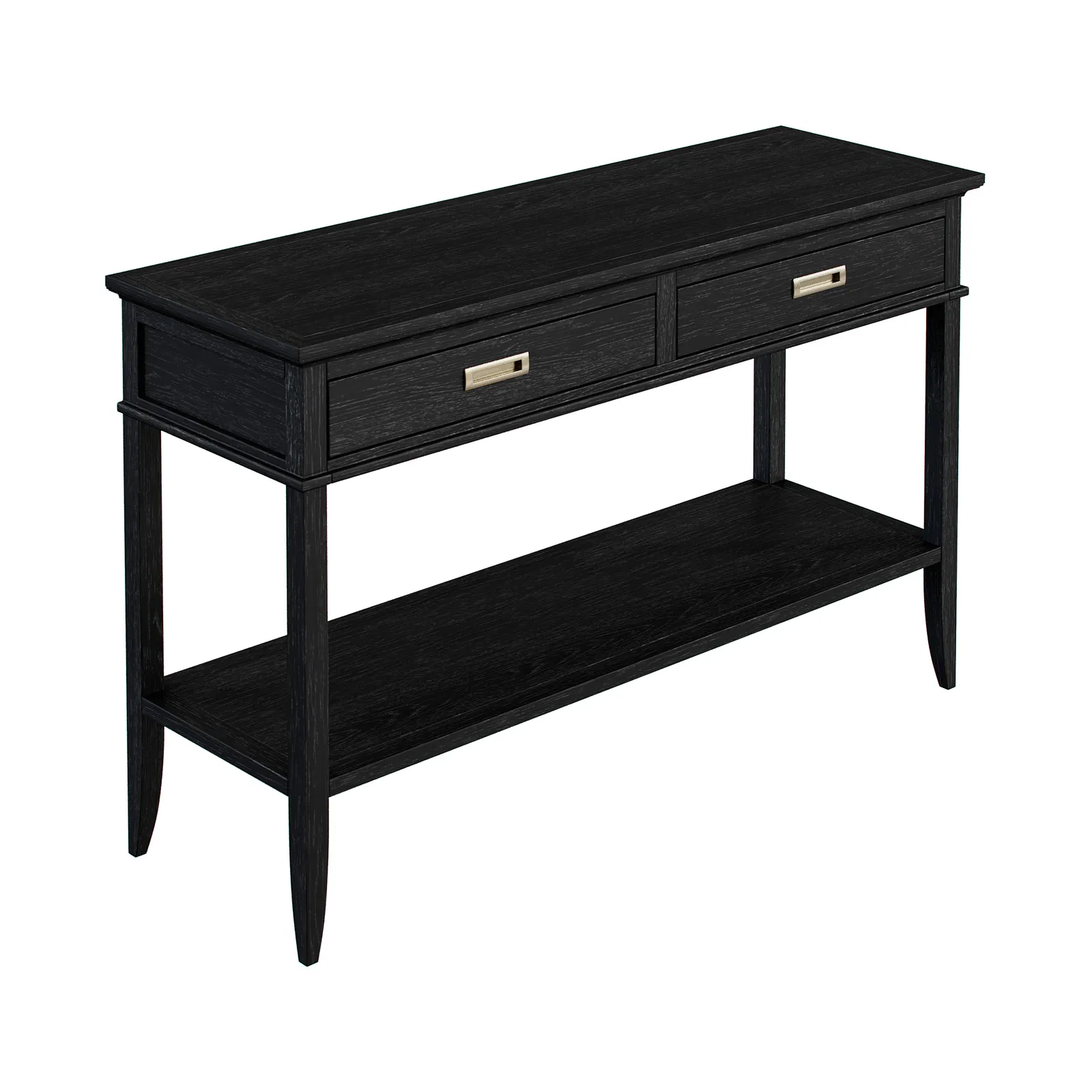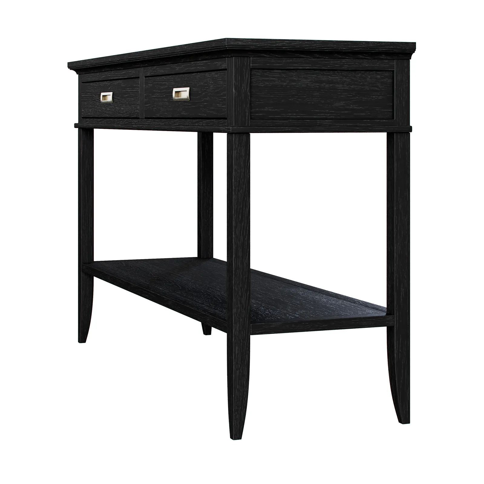 Консоль с двумя выдвижными ящиками и полкой коллекции Timeless из шпона вяза в морилке цвета "орех" с сохранением фактуры дерева.