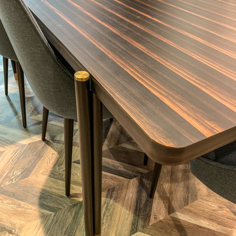 Обеденный стол от испанского бренда Mod Interiors изготовлен из высококачественного шпонированного МДФ высокой плотности. Металлические ножки с латунными колпачками подчеркивают изысканность модели.