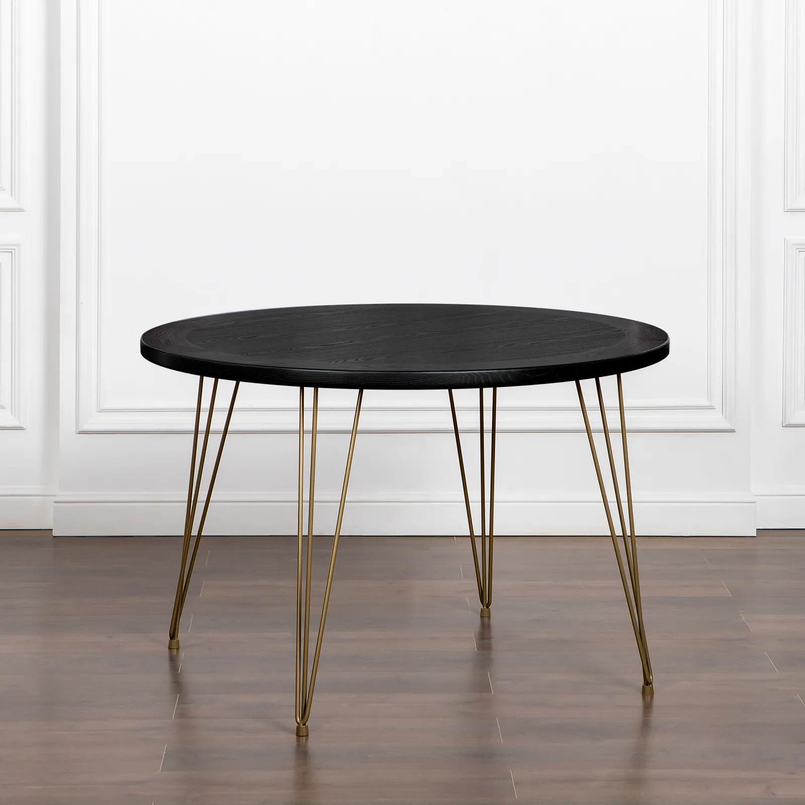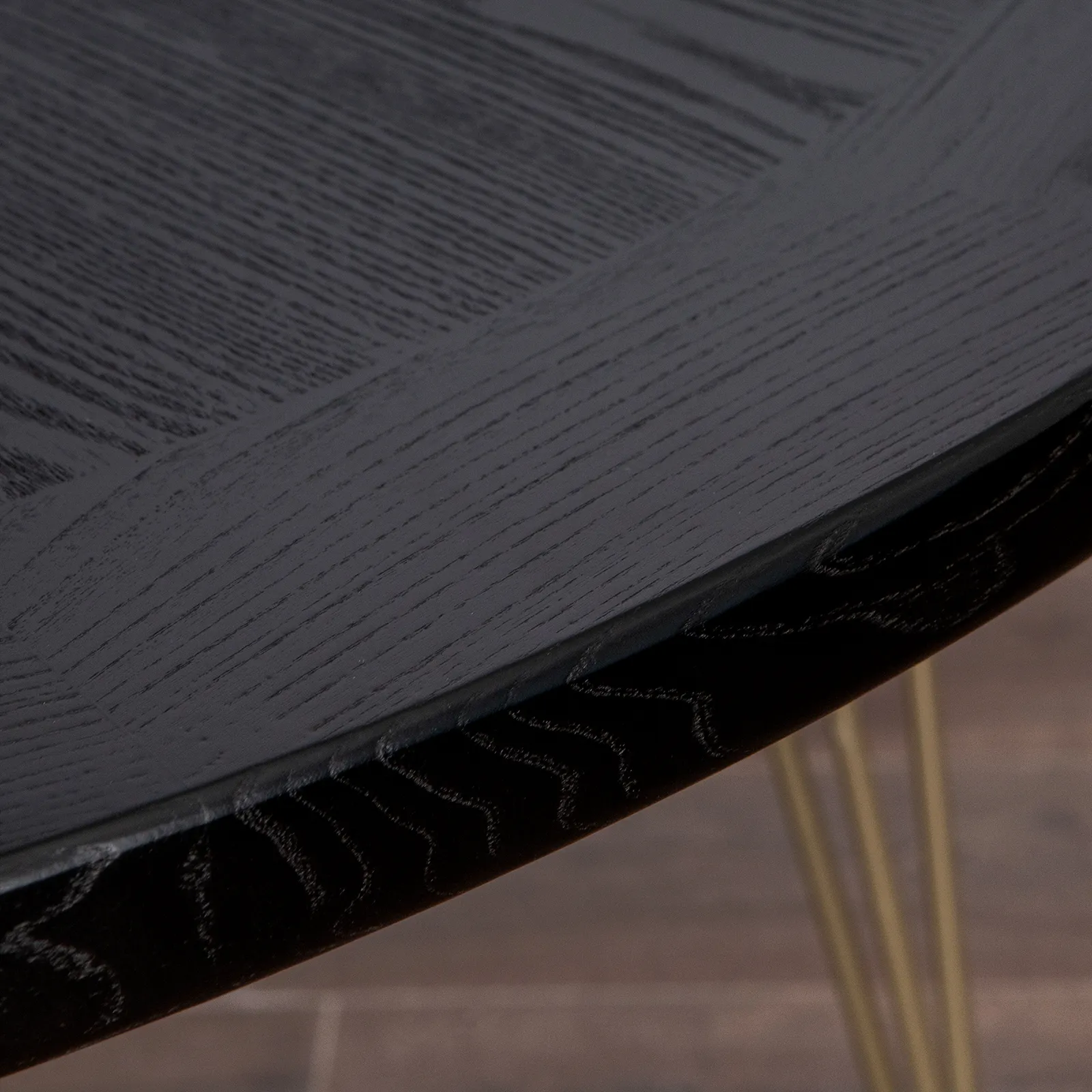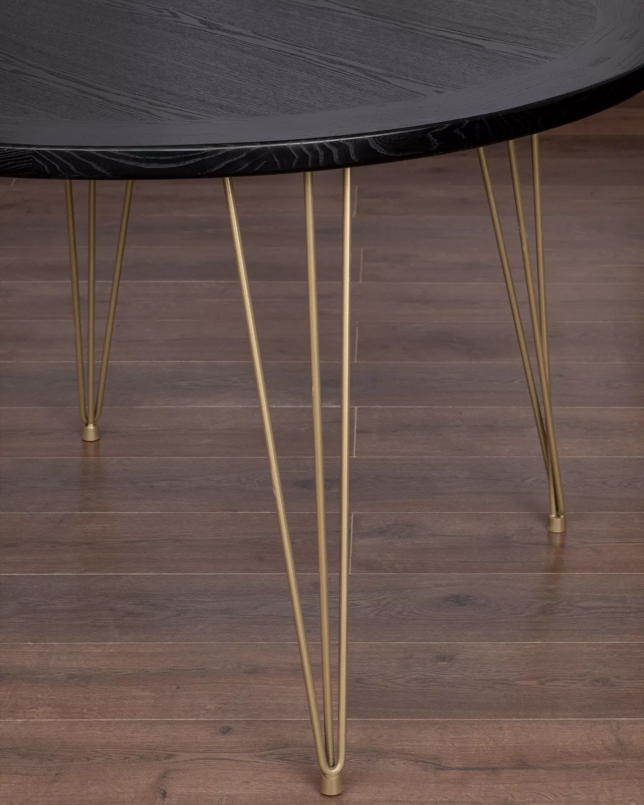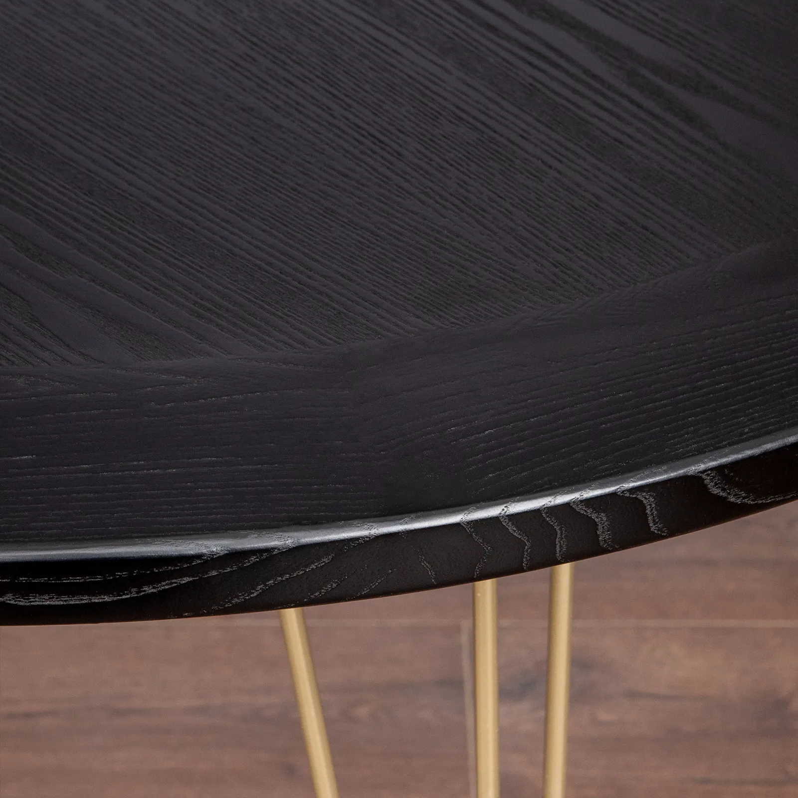 Возможно изготовление на заказ: цвет морилки столешницы на выбор (на фото в черной морилке), цвет опор "шампань" (светло-золотистый).