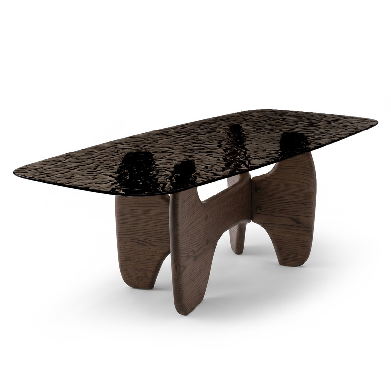 Округлые ноги, как бы продолжая тему воды, похожи на обкатанные волнами части деревьев, добавляют столу еще большей эффектности.