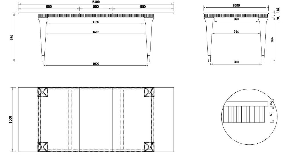 Стол раскладной. Вставка 50 см по центру стола. Вставка хранится в столе. Отделка вставки совпадает с отделкой столешницы.