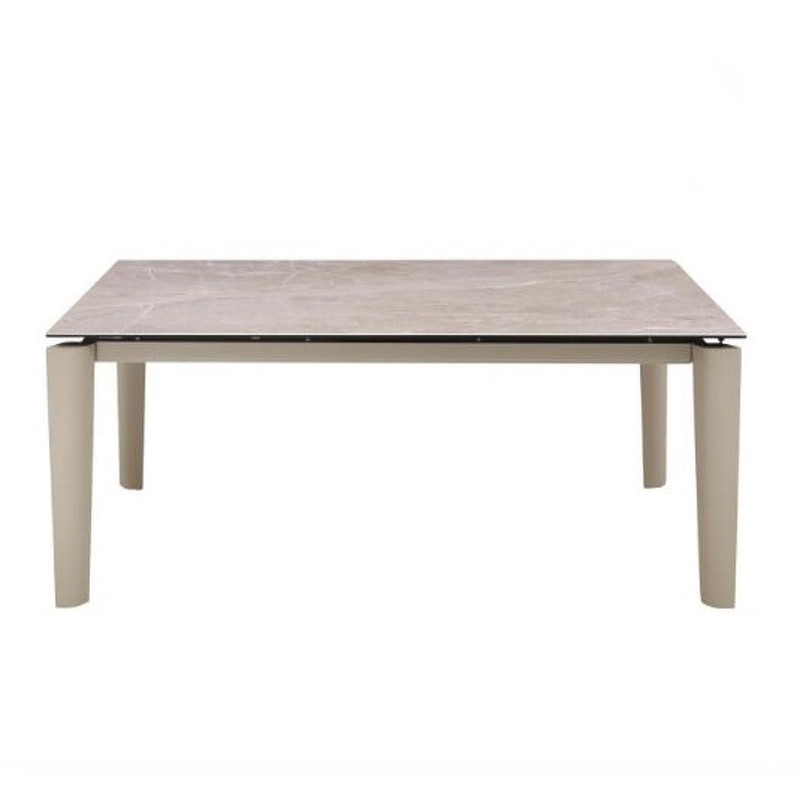 Столешница - стеклокерамика: закаленное стекло (8 мм) и керамика (3 мм). Основание и ножки - высококачественный металл в отделке стойкой к внешним воздействиям порошковой краской бежевого цвета.