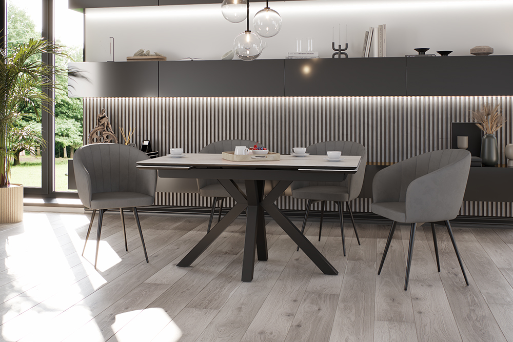Обеденный стол SPARTA LIGHT 140 MARBLE MATT CER+ — современная эстетика и стильный центр притяжения. Его мощные изогнутые ножки придают конструкции не только устойчивость, но