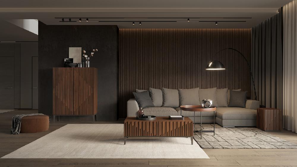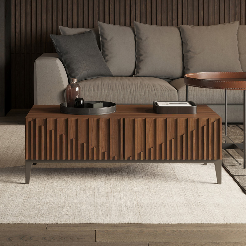 Журнальный столик от бренда Mod Interiors изготовлен из высококачественного, шпонированного МДФ высокой плотности, металлические ножки.