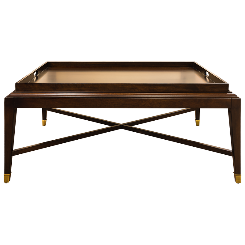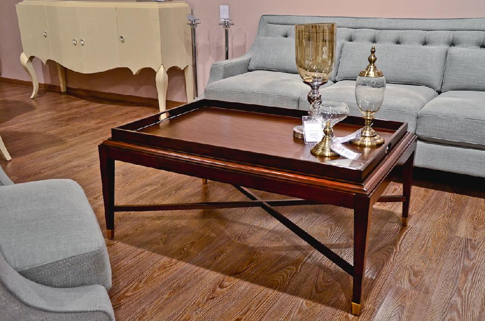 Журнальный стол в стиле неоклассика от итальянского бренда Fratelli Barri. Столешница дополнена подносом с ручками. Ножки имеют декоративные металлические колпачки.