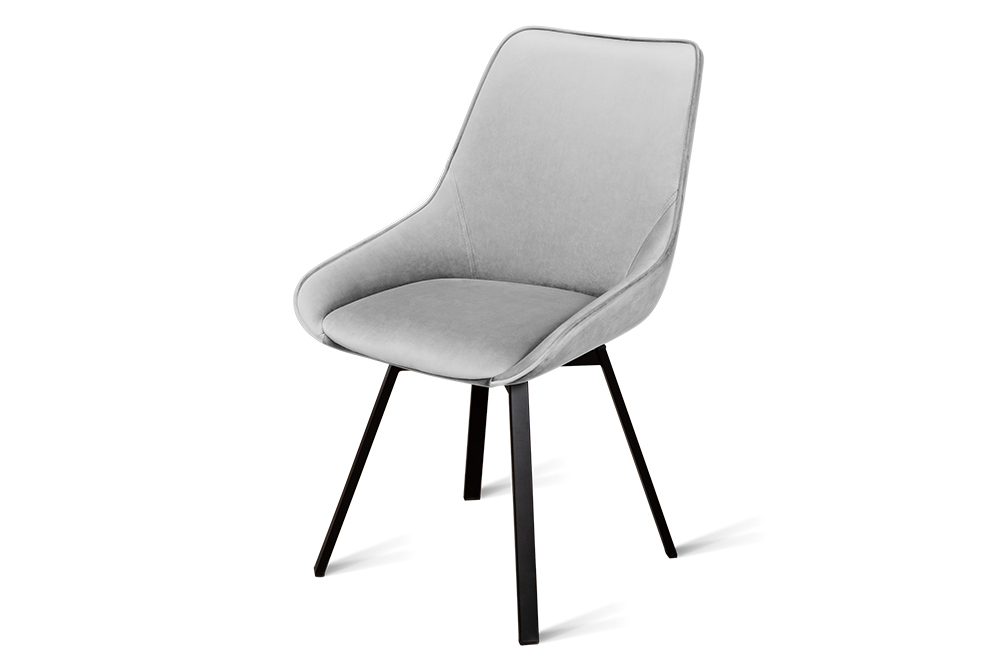 Стул B313-m LIGHT GREY VL08 BK — минималистичная модель для офисного пространства или обеденной зоны. Обивка универсального светло-серого цвета изготовлена из фактурного велюр