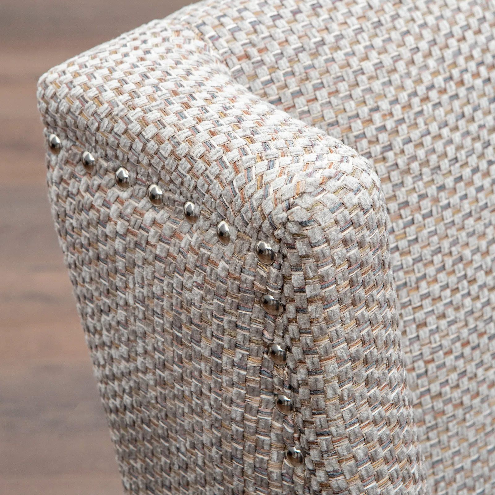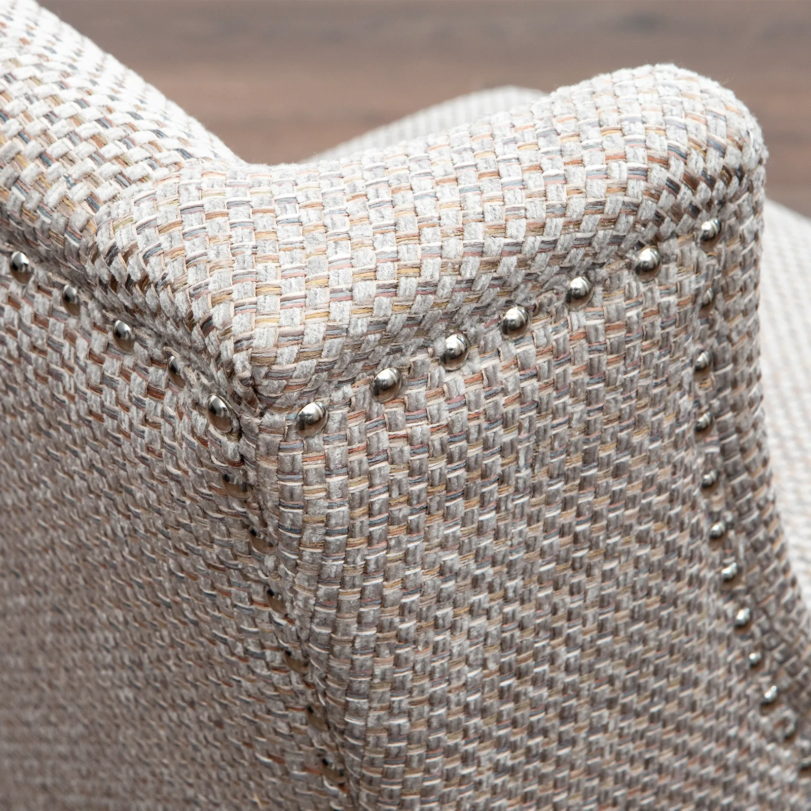 Цвет декоративных гвоздей: серебро, хром или бронза.